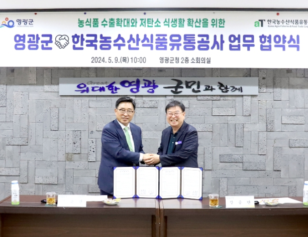 [뉴스서울] 영광군은 지난 9일 한국농수산식품유통공사와 농수산식품 수출확대와 저탄소 식생활 확산을 위한 업무협약(MOU)을 체결했다.