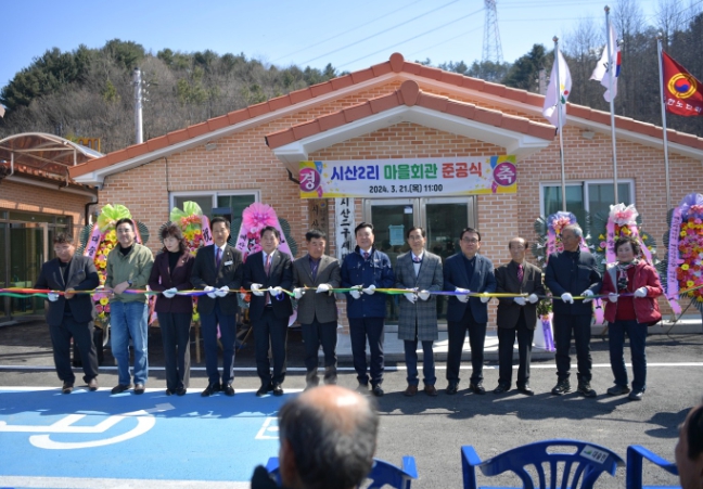 신축된 마을회관은 총사업비 1억8500만원을 투입해 77.46㎡(23평) 규모로 건립됐으며, 기존 시산2리 마을회관은 1989년대에 지어진 건축물로 노후화되고 협소해 평소 주민들이 사용에 불편을 호소해 왔다.