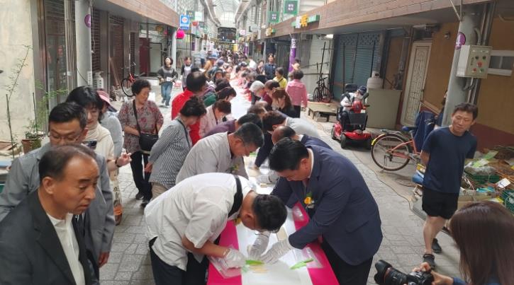 특히 최장거리 칼국수 썰기 퍼포먼스를 진행, 내빈/상인/고객 등 100여 명이 어우러지며 함께 공유하고 발전시키는 시장이라는 의미를 더하고 장관을 연출했다.