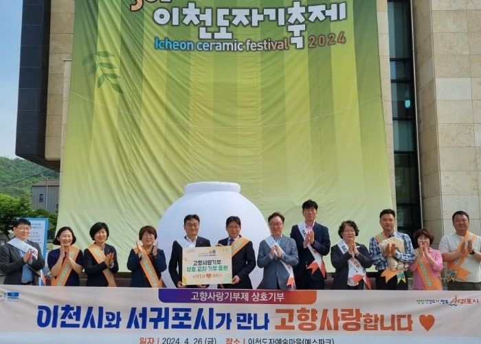 이천시 엄진섭 부시장과 서귀포시 현창훈 부시장은 지난 26일 제38회 이천도자기축제 개막식에서 만나 고향사랑기부제를 널리 알리고 교류 도시 간 관계를 더욱 돈독히 하고자 고향사랑기부금 상호기부를 실천했다.