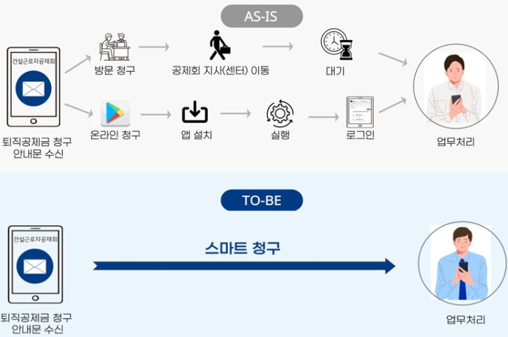 [뉴스서울] 고용노동부 건설근로자공제회가 건설근로자들의 퇴직공제금 청구 절차를 혁신적으로 간소화하기 위해 건설근로자 스마트청구서비스를 새롭게 도입한다고 밝혔다.