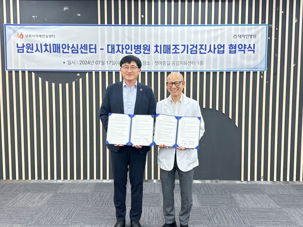 [뉴스서울] 남원시치매안심센터는 치매 진단평가를 위해 대자인병원과 17일 치매조기검진 업무협약을 체결했다.