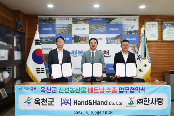 [뉴스서울] 충청북도 옥천군은 2일 군청에서 베트남 수입업체 Hand·Hand, 수출업체 한사랑과 베트남 수출 확대를 위한 업무협약을 했다고 밝혔다.