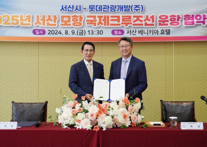 충남 서산시는 9일 베니키아 호텔에서 롯데관광개발㈜과 ‘2025년 서산 모항 국제 크루즈선 운항 협약’을 체결했다고 밝혔다.