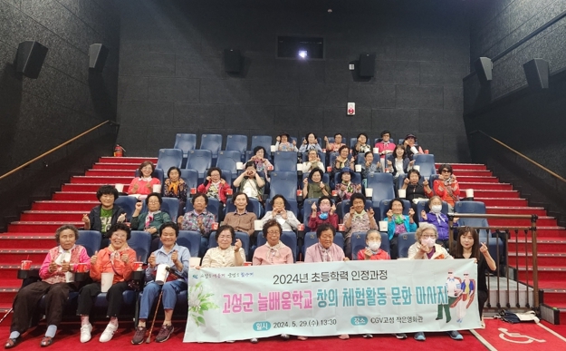 [뉴스서울] 고성군은 29일 늘배움학교 학습자들을 대상으로 씨지브이(CGV)고성 작은영화관에서 창의 체험활동(영화관람)을 진행했다고 밝혔다.