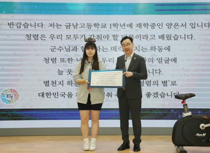 이날 양은서 양과 하승철 하동군수는 양은서 양의 사연을 각색한 퍼포먼스를 함께 펼치며 선포식의 시작을 알렸다.