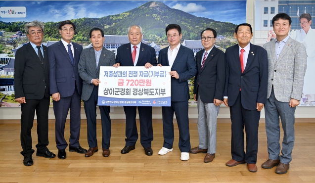 대한민국상이군경회 경상북도회는 10일 경상북도청 도지사 접견실에서 지방 생존을 위협하는 저출생과의 전쟁을 위해 써달라며 22개 시군 지회장과 회원 487명이 십시일반 모은 저출생 극복 성금 720만 원을 경상북도에 맡겼다.