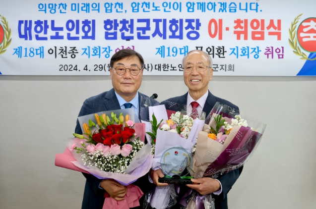 이날 행사는 합천군 노인복지 증진에 기여한 이천종 지회장의 감사패 및 공로패 전달식과 이임회장 이임사, 신임회장 취임사, 격려사의 순으로 진행됐다.