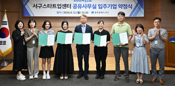 서구는 12일 공유사무실 입주기업 4곳과 업무협약을 체결했다. 입주기업은 공모를 통해 선정했으며 ▲랜인바이오(대표 조인아, 반려동물 덴탈케어 제품 개발) ▲플렉스메디(대표 최재혁‧이원균, 인체 삽입용 의료용품 개발) ▲지니어스컨설팅(대표 김여진, 청년 등 생애주기별 금융교육 사업 추진) ▲예비창업자 박진영(소규모 주문 기반 한지상품 생산, 대한민국 한지대전 문체부장관상 수상)이 최종 선정됐다.