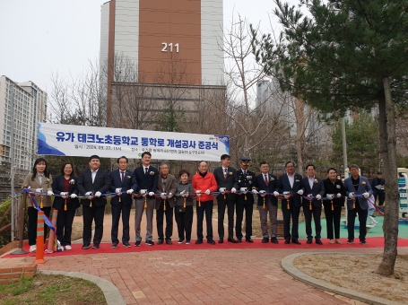테크노초등학교의 통학로 조성을 위한 ‘유가 테크노초등학교 통학로 개설공사’는 2022년 10월 근린공원 조성계획 변경 용역 착수를 시작으로 다음 해 7월 실시설계 용역을 거쳐 9월부터 본격적으로 진행됐다. 그 노력의 결실로 테크노초등학교가 개교한 이번 3월이 가기 전 공사가 완료됐다.