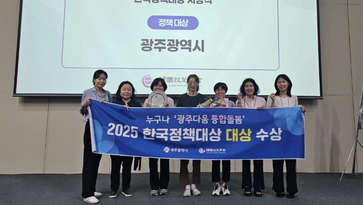 광주광역시는 25일 부산항 국제전시컨벤션센터에서 열린 ‘2025 한국정책대상 시상식’에서 광주다움 통합돌봄이 영예의 1등상인 정책대상을 수상했다고 밝혔다.