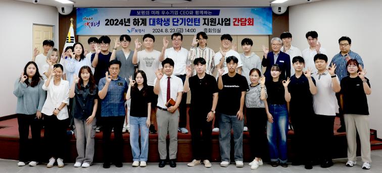 [뉴스서울] 보령시는 23일 시청 중회의실에서 김동일 시장을 비롯해 대학생 단기인턴 사원과 참여기업 관계자 등 30여 명이 참석한 가운데‘대학생 단기인턴 지원사업 간담회’를 개최했다.