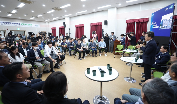 김동연 지사는 시찰에 앞서 호평평내행정복지센터에서 ‘동북부 공공의료원 설립 현장 설명회’를 열었다. 설명회에는 김동연 지사를 비롯해 주광덕 남양주시장과 국회 과학기술정보방송통신위원장인 최민희 국회의원, 도의원, 보건의료전문가, 지역주민 등 70여 명이 참석했다.