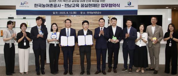 [뉴스서울] 전남교육 꿈실현재단과 한국농어촌공사는 12일 한국농어촌공사 본사에서 ‘지속가능한 농어촌 가치 확산과 전남 글로컬 미래 인재 육성’을 위한 업무협약을 체결했다.