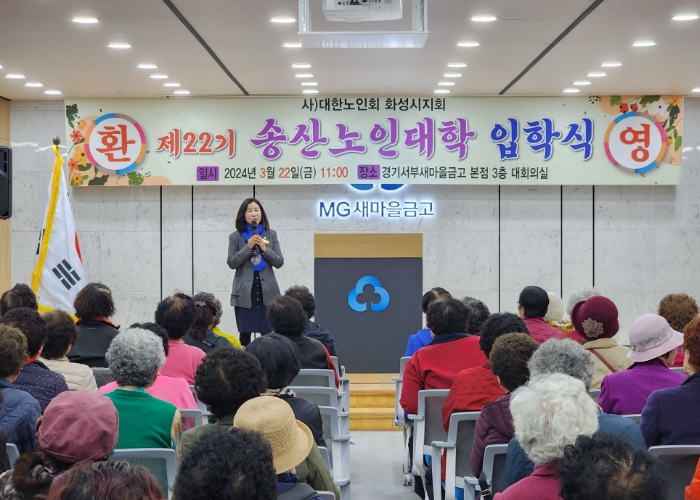 [뉴스서울] 화성시의회 김경희 의장은 3월 22일, 사강새마을금고(화성시 마도면)에서 열린 송산 노인대학 입학식에 참석하여, 인생 제2막의 시작을 응원했다.