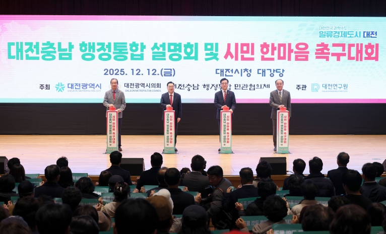 [뉴스서울] 대전시의회 조원휘 의장은 12일 대전시청에서 개최된 대전충남 행정통합 설명회 및 시민 한마음 촉구대회에 참석해 지방소멸 위기 속에서 진행되는 대전·충남 행정통합 특별법안의 조속한 의결을 시민들과 함께 촉구했다.