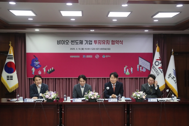 [뉴스서울] 강원특별자치도가 3월 10일 도청 신관 소회의실에서 원주시 및 ㈜제론셀베인, ㈜파인플로우 두 개 기업과 투자 유치 협약을 체결하며, 총 272억 원 규모의 투자를 유치했다.