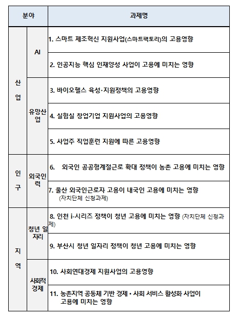 | ▲ 2026년 고용영향평가 대상과제 목록 |