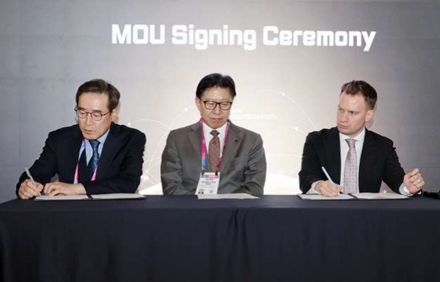 | ▲ 좌측부터 부산경제진흥원장 송복철 부산시장 박형준 헝가리 수출진흥청 , , (HEPA) 부대표 Dr. Gábor Peter Artner |