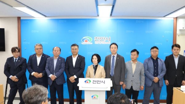 [뉴스서울] 천안시의회 후반기 의장단 및 위원장이 8일 천안시청 브리핑룸에서 기자회견을 열었다.