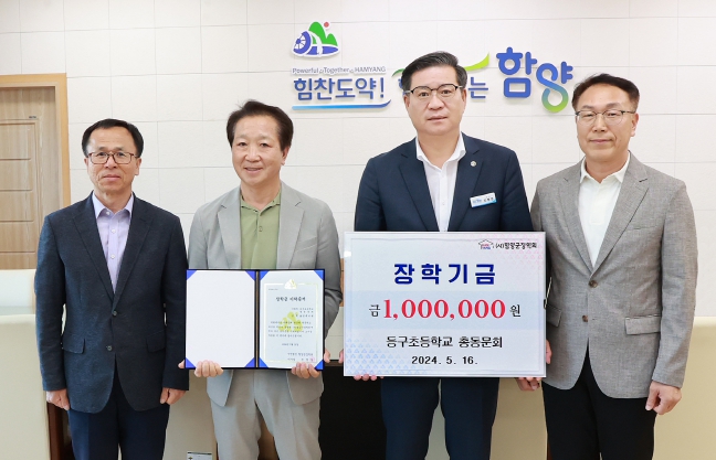 [뉴스서울] 사단법인 함양군장학회는 지난 5월 16일 마천 등구초등학교 총동문회에서 함양군을 방문해 장학금 100만 원을 기탁했다고 밝혔다.