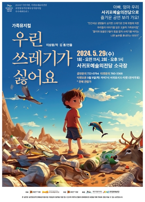 [뉴스서울] 서귀포시 서귀포예술의전당은 5월 29일(오전 11시·오후 1시) 2회에 걸쳐 서귀포예술의전당 소극장에서 가족뮤지컬 ‘우린 쓰레기가 싫어요’를 공연한다.