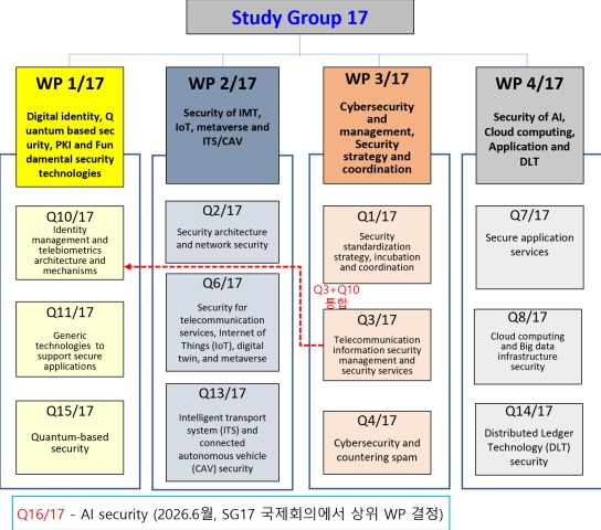 한편, 정보보호연구반이 인공지능 자체 보안, 생성형 AI 모델, 딥페이크 탐지 및 파인튜닝 보안 등 전반적인 인공지능 보안 기술을 전담할 연구과제(Question 16)의 잠정 신설에 합의함에 따라, 우리나라는 에이전틱 및 피지컬 AI 보안 등 신흥 분야까지 연구 범위를 확대하여 새로운 리더십 확보를 목표로 적극 참여할 예정이다. 해당 연구과제는 2026년 1월 표준화자문그룹(TSAG) 국제회의에서 심의될 예정이고, 2026년 6월경 차기 SG17 국제회의에서 최종 승인될 예정이다.