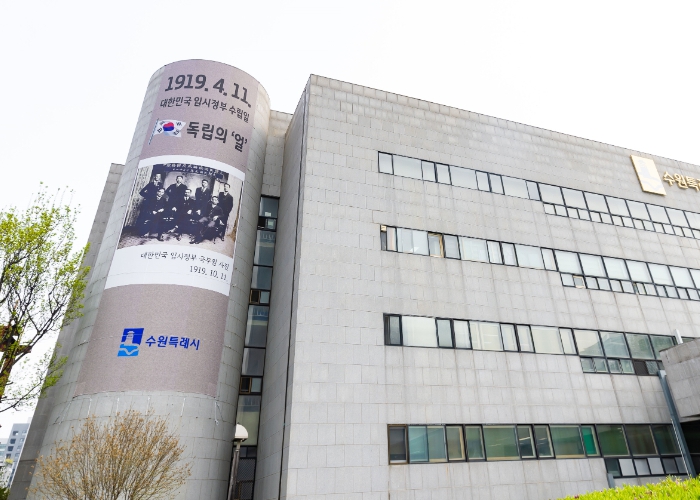 [뉴스서울] 수원시가 제105주년 대한민국 임시정부 수립을 기념해 시청 본과 외벽에 대한민국 임시정부 국무원 요인들의 사진을 인쇄한 대형 현수막을 게시했다.