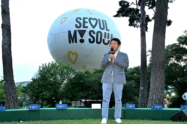 | ▲ 오세훈 서울시장이 10일(토) 저녁 여의도공원에서 열린 시민들과 함께하는 서울달 개장식에 참석해 개장 축사 인사를 하고 있다. |