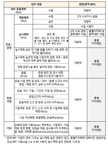 | ▲ 광역 BRT 특별지방자치단체 권한위임 세부 내용 |