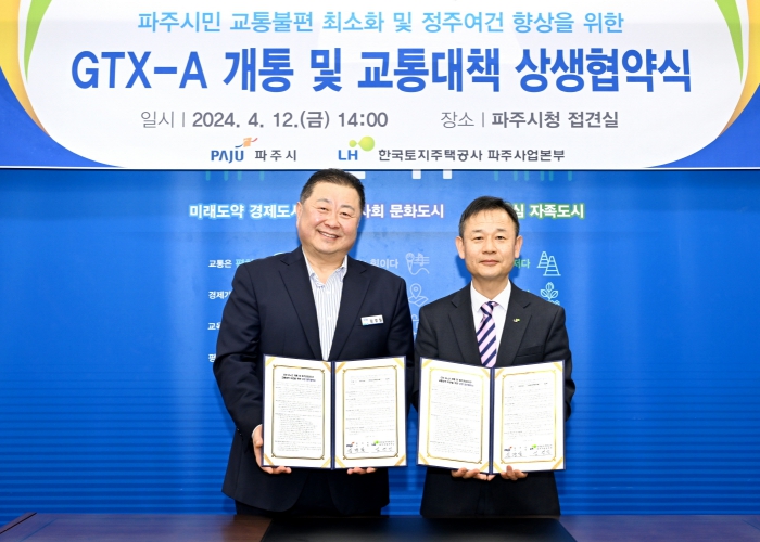 [뉴스서울] 파주시와 한국토지주택공사(LH) 파주사업본부는 12일 ‘수도권 광역급행철도(GTX)-A 개통 및 파주운정3지구 교통대책 마련을 위한 상생 업무협약’을 체결했다.