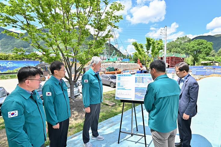 | ▲ 최승준 정선군수, 아라리교 신축 현장 및 녹송공원 제방도로 공사 현장 점검 |