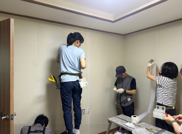 이들은 ‘도배․타일 시공 실무 과정’을 이수한 교육생으로 구성된 봉사자들로 장애인 거주 가정을 방문해 노후 된 도배와 파손된 타일을 보수하고 집안을 쾌적하게 단장해 줬다.