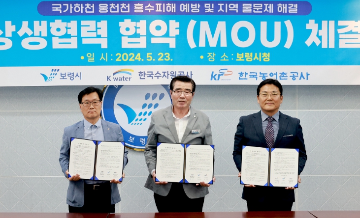 시는 23일 시장실에서 김동일 시장을 비롯해 방석배 한국수자원공사 보령권지사장, 박운근 한국농어촌공사 보령지사장이 참석한 가운데 상생협력 협약을 맺었다.