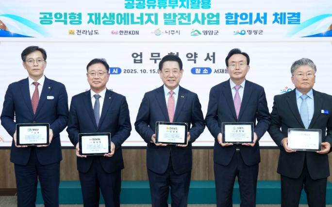 [뉴스서울] 전라남도는 15일 새정부의 재생에너지 대전환 기조와 재생에너지 보급 확대 정책에 따라 나주시, 영광군, 영암군, 한전KDN과 탄소중립 실현·에너지 기본소득 실현을 위한 ‘공익형 재생에너지 발전사업’ 업무협약을 했다고 밝혔다.