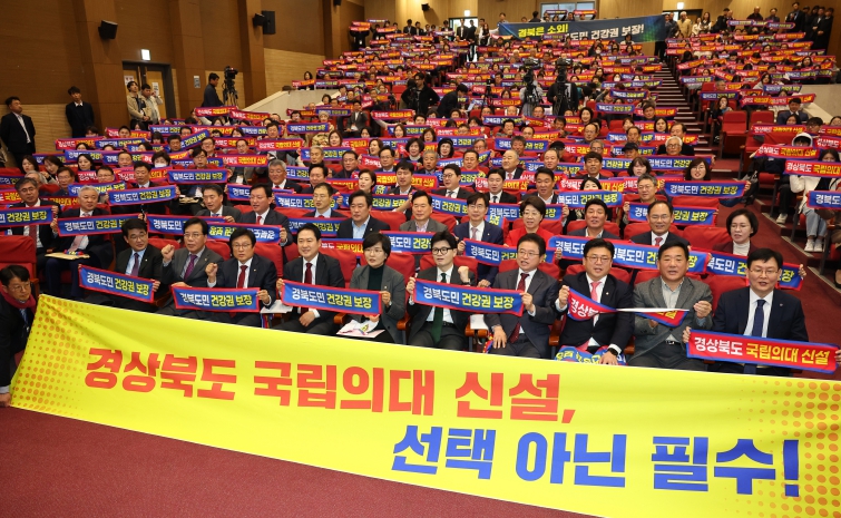 이철우 경북도지사는 모두발언을 통해 “모든 국민은 건강에 대하여 국가의 보호를 받을 권리가 있는 만큼 도민 누구나 소외당하지 않고 양질의 의료혜택을 누리도록 경북 국립의대 신설이 반드시 이뤄져야 한다”며 “우리나라 경제개발의 신화인 경북이 고령화와 지방소멸 위험에 직면하여 국토 균형발전을 위해서도 의대가 필요하다”고 밝혔다.