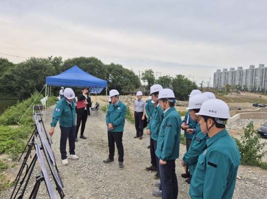 이날 점검하는 전주천 국가하천 정비사업 현장은 특히 홍수에 취약한 하천 합류 지점의 퇴적된 토사를 준설해 물 흐름을 개선하고 `23년 집중호우로 유실된 하천시설(금학보)을 복구하는 현장으로 올해 마무리될 예정이다.