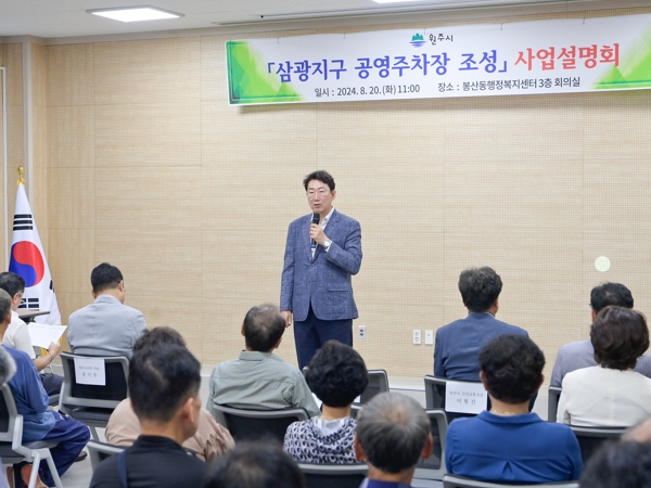 [뉴스서울] 원주시는 8월 20일 오전 11시 봉산동 행정복지센터 3층 회의실에서 삼광지구 공영주차장 조성 사업설명회를 개최했다.