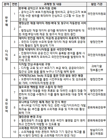 특히, 국민참여를 통한 사회문제 해결, 디지털·AI 기술을 활용한 행정 서비스 개선, 공익신고 보호 강화 등 국민 체감도가 높은 핵심 분야에 역량을 집중한다.