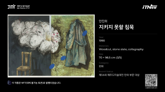 [뉴스서울] 제주창조경제혁신센터(대표이사 이병선)는 보육기업인 ㈜잇뉴(대표 고병욱)가 제주도립미술관과 협력해 NFT(대체 불가능 토큰) 기반의 디지털 작품 전시를 성공적으로 개최하며 예술과 기술의 새로운 융합 사례를 선보였다고 밝혔다.