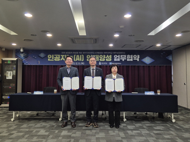 [뉴스서울] 제주국제자유도시개발센터는 12월 11일 제주대학교, 제주상공회의소와 함께 도내 인공지능(AI) 전문인재 양성을 위한 업무협약을 체결했다.