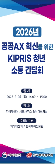 [뉴스서울] 지식재산처는 2월 26일 14시, 한국지식재산센터(서울 강남구)에서 청년들의 참신한 시각을 통해 지식재산정보검색서비스(KIPRIS)의 발전 방향을 모색하는 'KIPRIS 청년 소통 간담회'를 개최한다고 밝혔다.