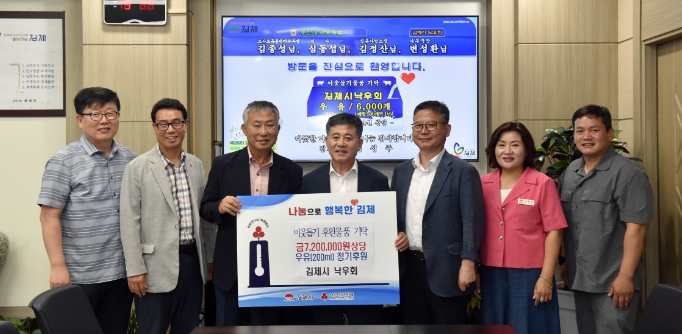 [뉴스서울] 김제시는 김제시낙우회가 29일 저소득 독거노인에 지원해달라며 720만원 상당의 우유(200ml)를 기탁했다고 밝혔다.