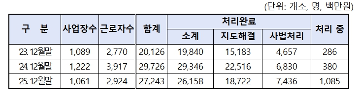 | ▲ 체불임금 현황(2025. 12월 말) |