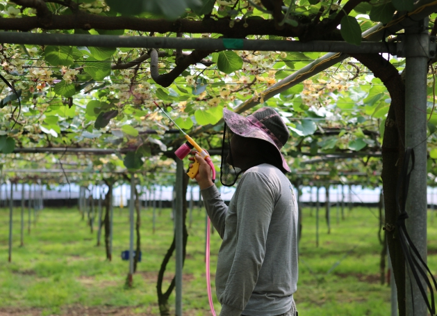 키위는 암꽃과 수꽃의 개화시기가 달라 인공수분이 필수적이기 때문에 농가에서는 전년도에 채취한 수꽃가루를 냉동보관하거나 수입산 수꽃가루를 구입해 사용한다.