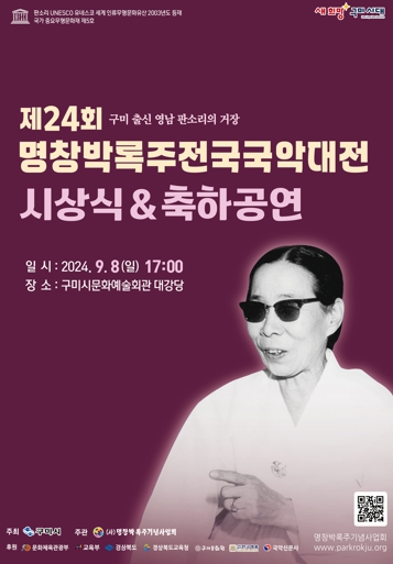 8일 오후 5시 구미문화예술회관 대공연장에서 열리는 축하공연에는 김병조의 사회로 박록주 선생의 손제자인 김민정 명창 등 다양한 예술가들이 무대에 올라 국악의 진수를 선보일 예정이다.