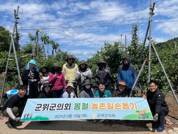 [뉴스서울] 군위군의회 박수현 의장과 의회사무과 직원들이 지난 16일 우보면의 과수 농가를 찾아 열매솎기(적과작업)를 실시했다.