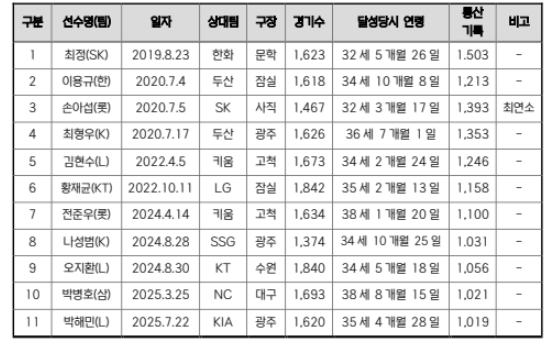 강민호는 1,000득점을 달성할 경우, 만 40세의 나이로 종전 이종범(전 KIA)의 기록인 38세 9개월 21일을 넘어 역대 최고령 기록을 새로 쓰게 된다