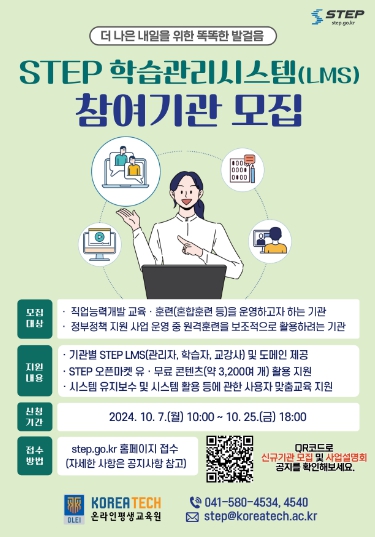 ▲ 한국기술교육대학교 STEP 학습관리시스템 참여기관 모집 포스터 |