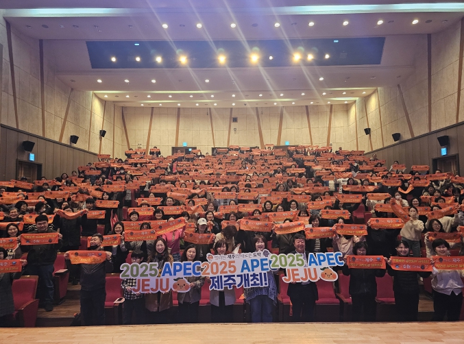 한편, 이날 이금희 강사와 400여 명의 관람객은 제주도민의 염원과 소망을 모아 2025년 아시아태평양경제협력체(APEC) 정상회의 제주유치’를 위한 퍼포먼스를 진행했다.